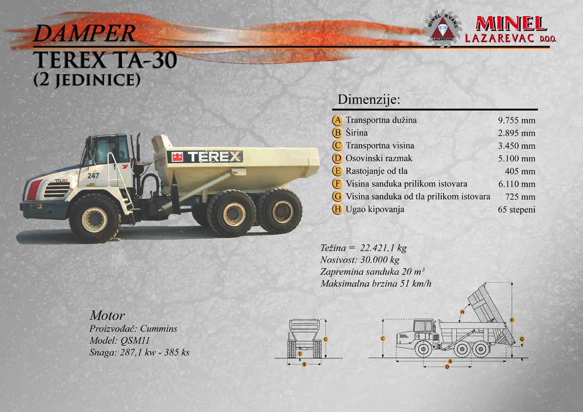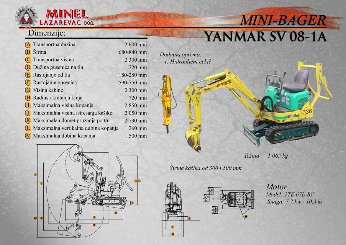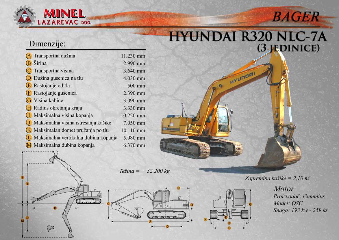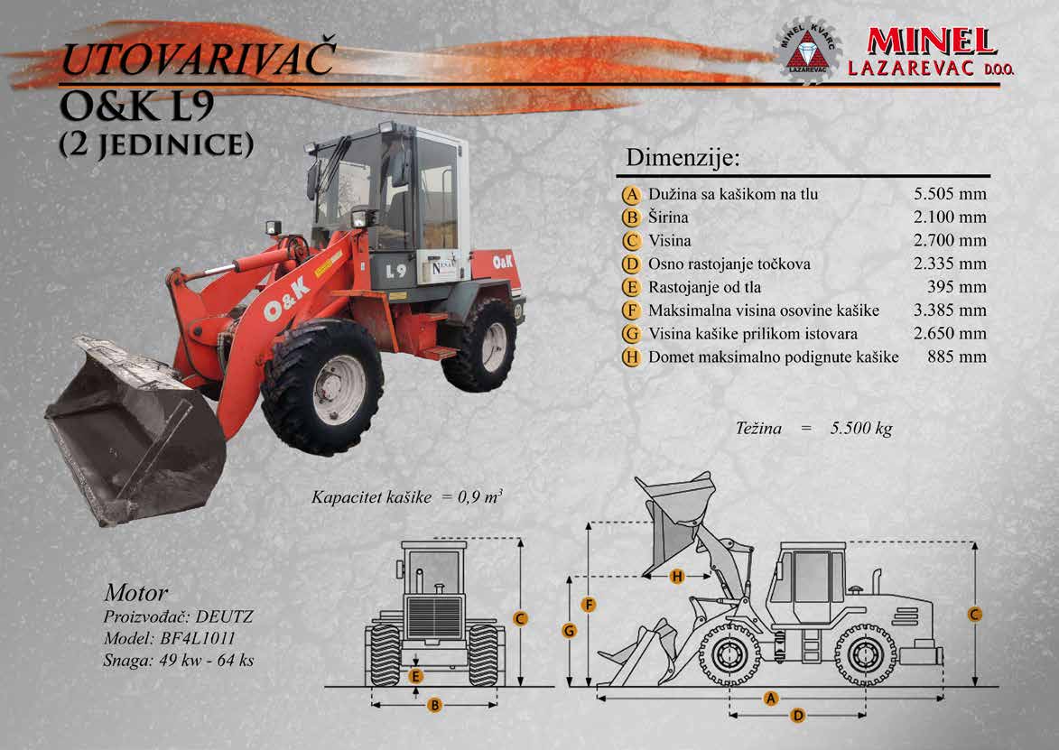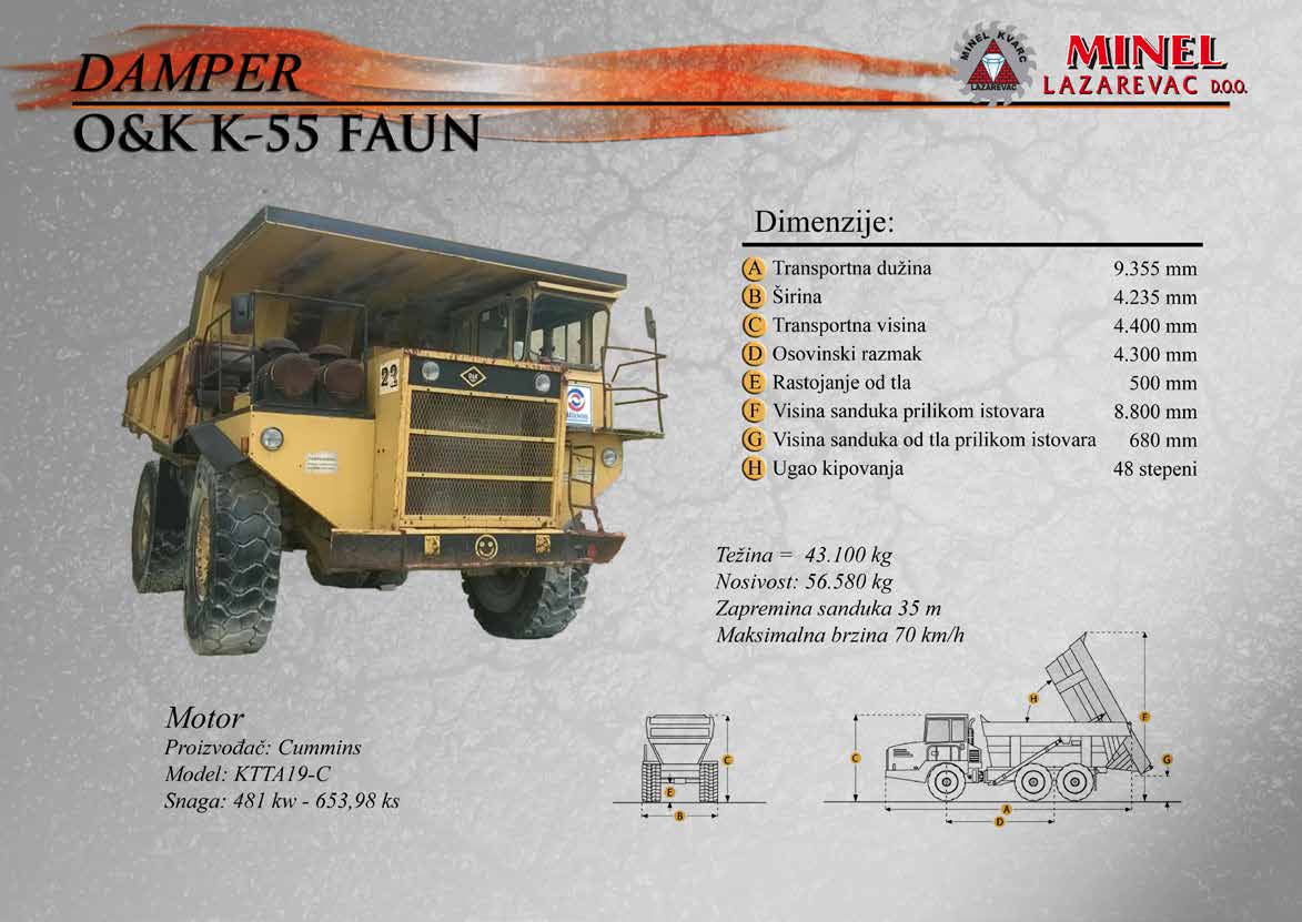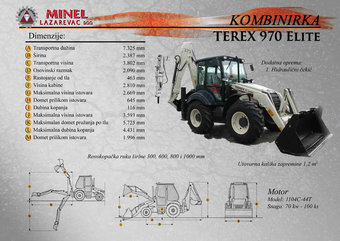 GRAĐEVINSKA MEHANIZACIJA 1 Sve radove izvodimo sopstvenom mehanizacijom koju čine : utovarivači, bageri, buldozeri, damperi, kamioni kiperi, i ostala sredstva. RADNO VREME Ponedeljak – Petak: 8:00 – 16:30 Hrs (Phone until 17:30 Hrs) Subota: 8:00 – 18:30 Hrs Nedelja: 11:00 – 15:00 Hrs (Phone until 16:30 Hrs) NAŠA ADRESA Karađorđeva 2/4, 11550 Lazarevac, Srbija Telefon: +381 65 2700 222, +381 11 7871 377, +381 69 27 00 222 Email: office@minelkvarc.rs