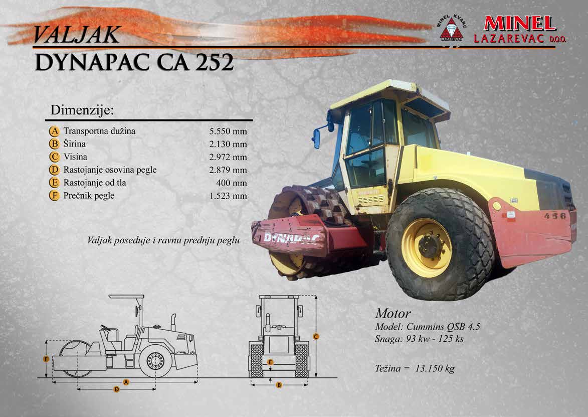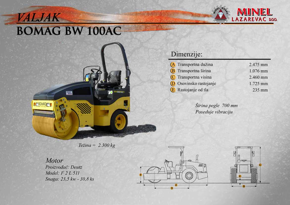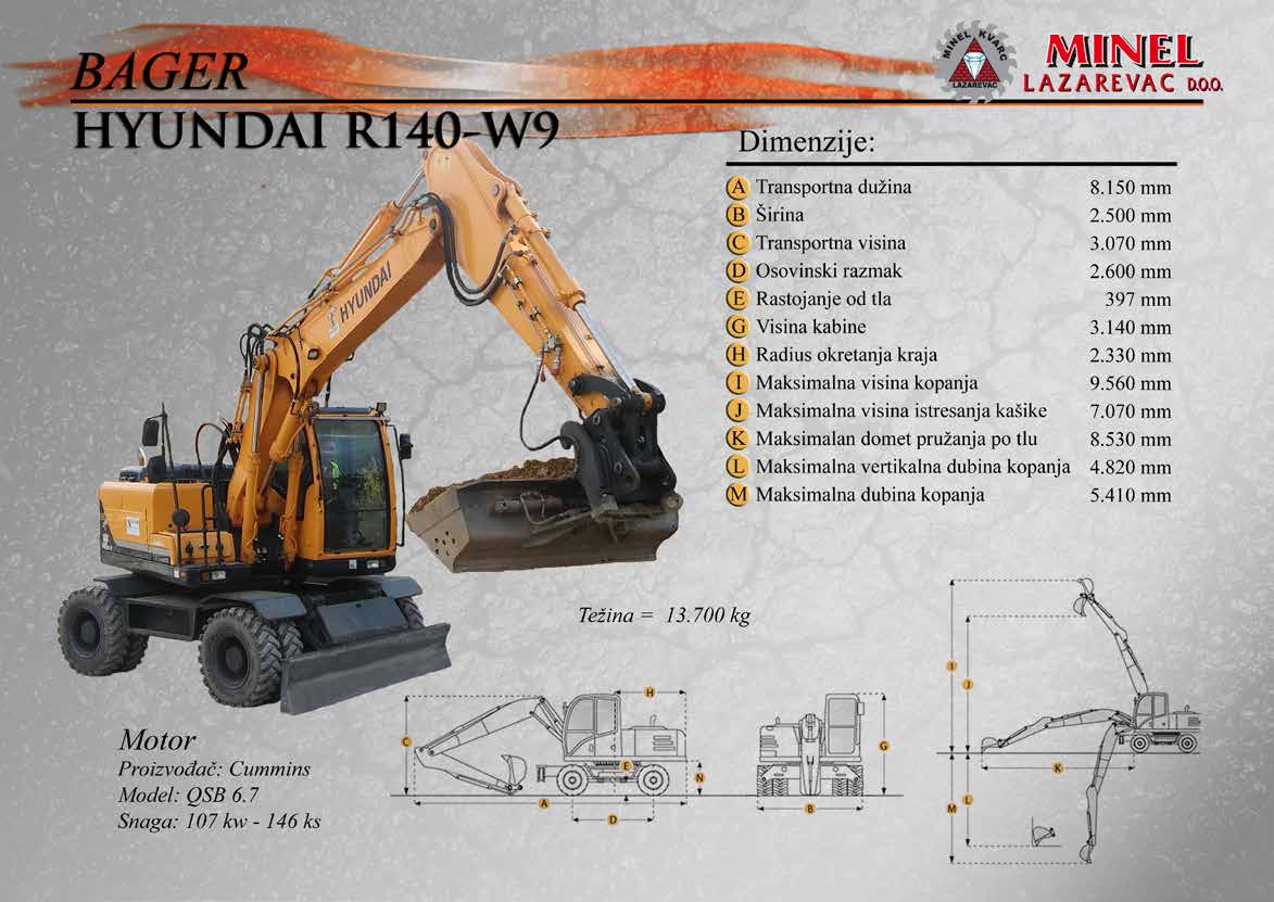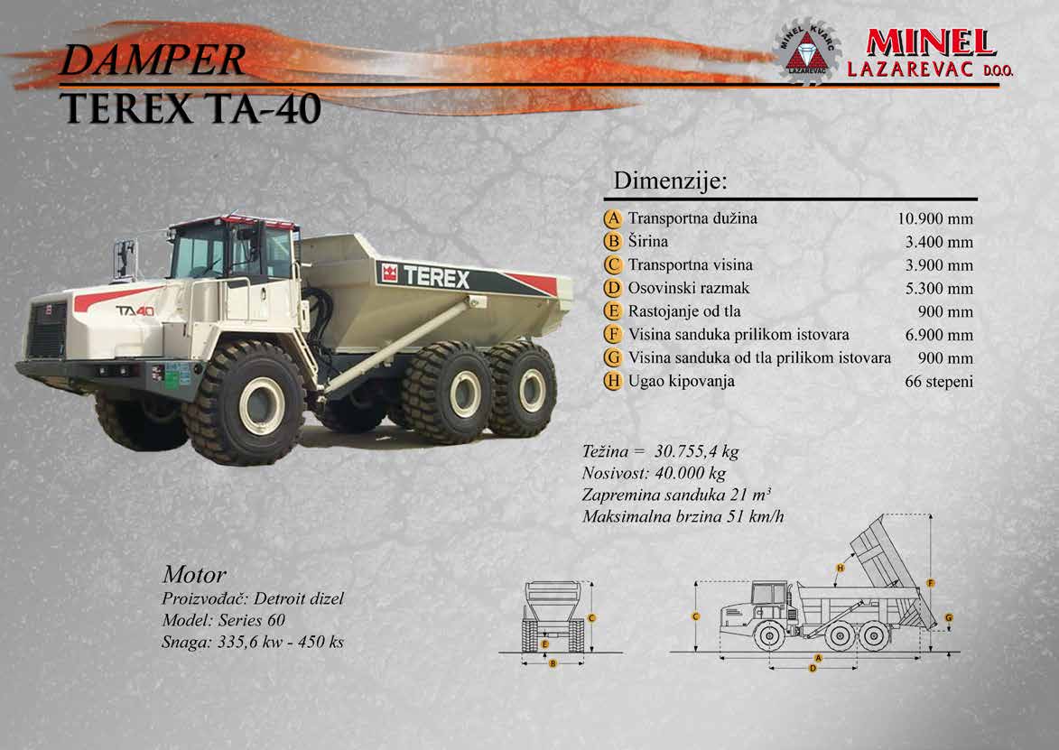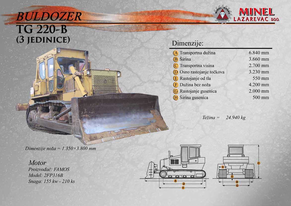 GRAĐEVINSKA MEHANIZACIJA 1 Sve radove izvodimo sopstvenom mehanizacijom koju čine : utovarivači, bageri, buldozeri, damperi, kamioni kiperi, i ostala sredstva. RADNO VREME Ponedeljak – Petak: 8:00 – 16:30 Hrs (Phone until 17:30 Hrs) Subota: 8:00 – 18:30 Hrs Nedelja: 11:00 – 15:00 Hrs (Phone until 16:30 Hrs) NAŠA ADRESA Karađorđeva 2/4, 11550 Lazarevac, Srbija Telefon: +381 65 2700 222, +381 11 7871 377, +381 69 27 00 222 Email: office@minelkvarc.rs